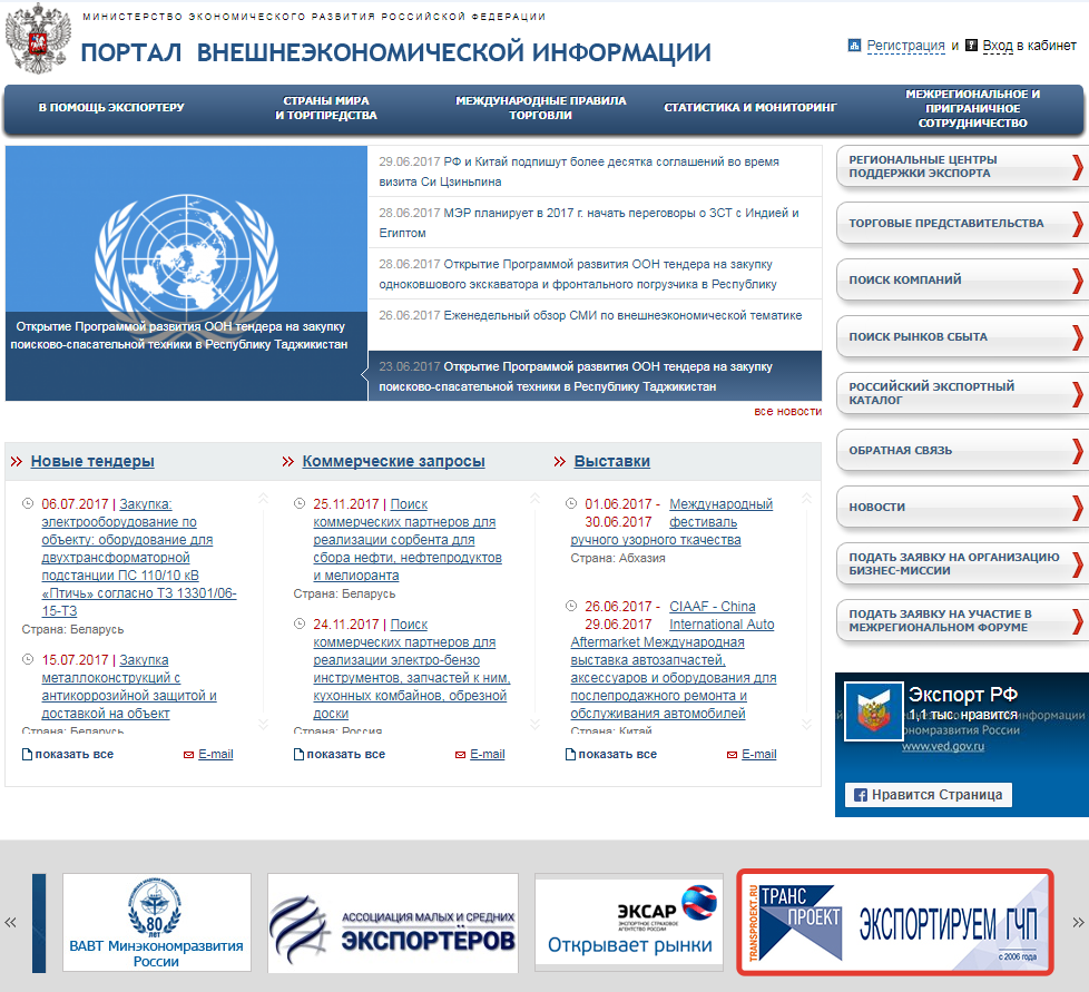 Министерство экономического развития Российской Федерации неоднократно оценивало высокий уровень профессиональной компетенции сотрудников ТРАНСПРОЕКТ Групп, при подготовке и реализации внешнеэкономических и инвестиционных проектов. Размещение баннера и видеоролика нашей компании на Едином портале внешнеэкономической информации Минэкономразвития России, наряду с Торгово-промышленной палатой Российской Федерации, Федеральной таможенной службой, Российским экспортным центром, Министерством промышленности и торговли Российской Федерации и Российским экспортным каталогом подтверждает высокий экспортный потенциал и конкурентоспособность наших услуг на внешних рынках.