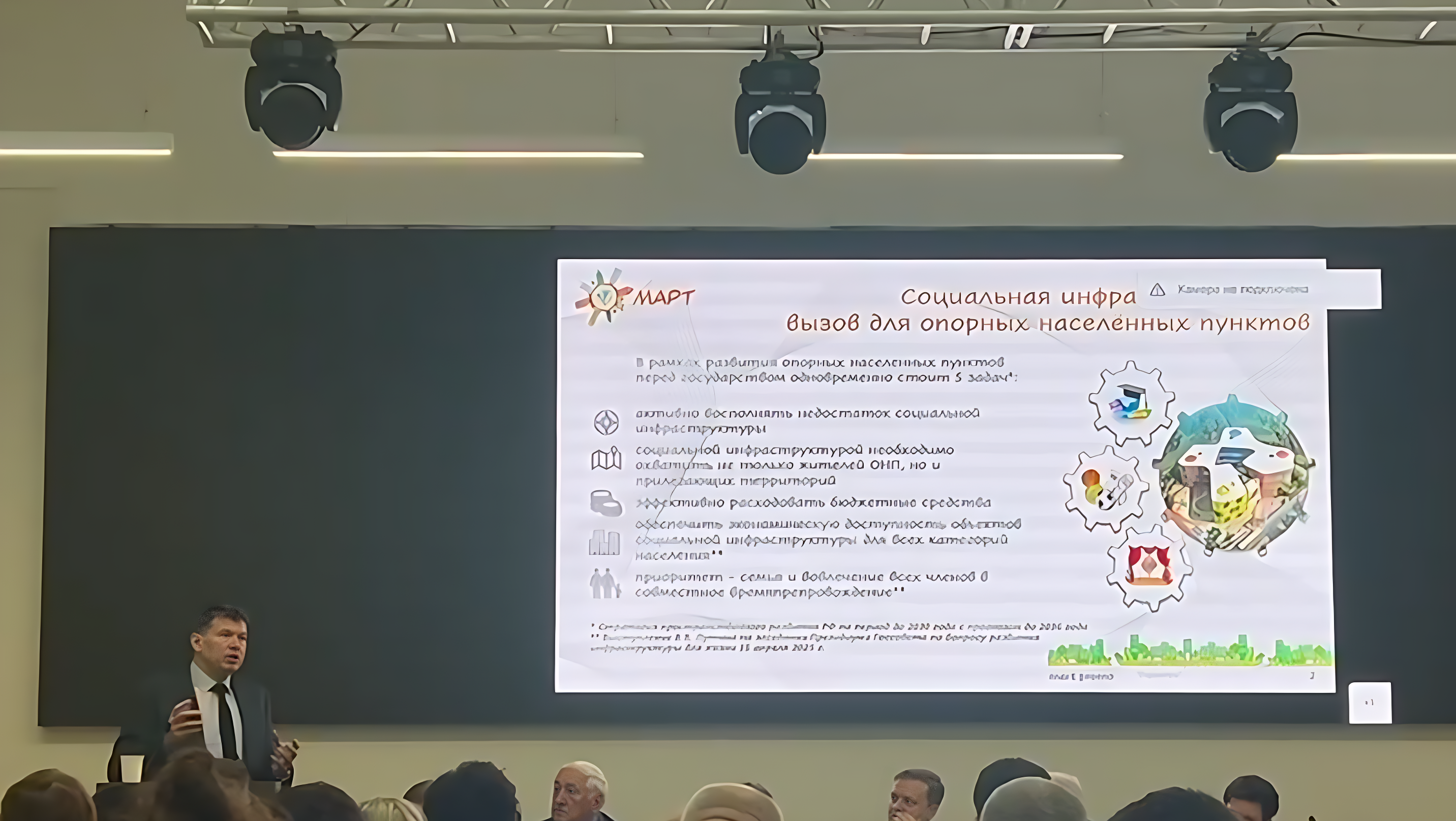…Уже прошло более 30 лет с распада Советского Союза, мы с вами находимся в новой России. Поэтому предлагаю привносить новые смыслы, новые идеи, новые подходы. В нашем социальном государстве через эти объекты как в опорных населенных пунктах, так и в любых других населенных пунктах, мэры, депутаты должны приходить и говорить: «Слушайте, у нас есть идея, есть инвесторы, нам нужна только политическая воля к реализации таких проектов!»